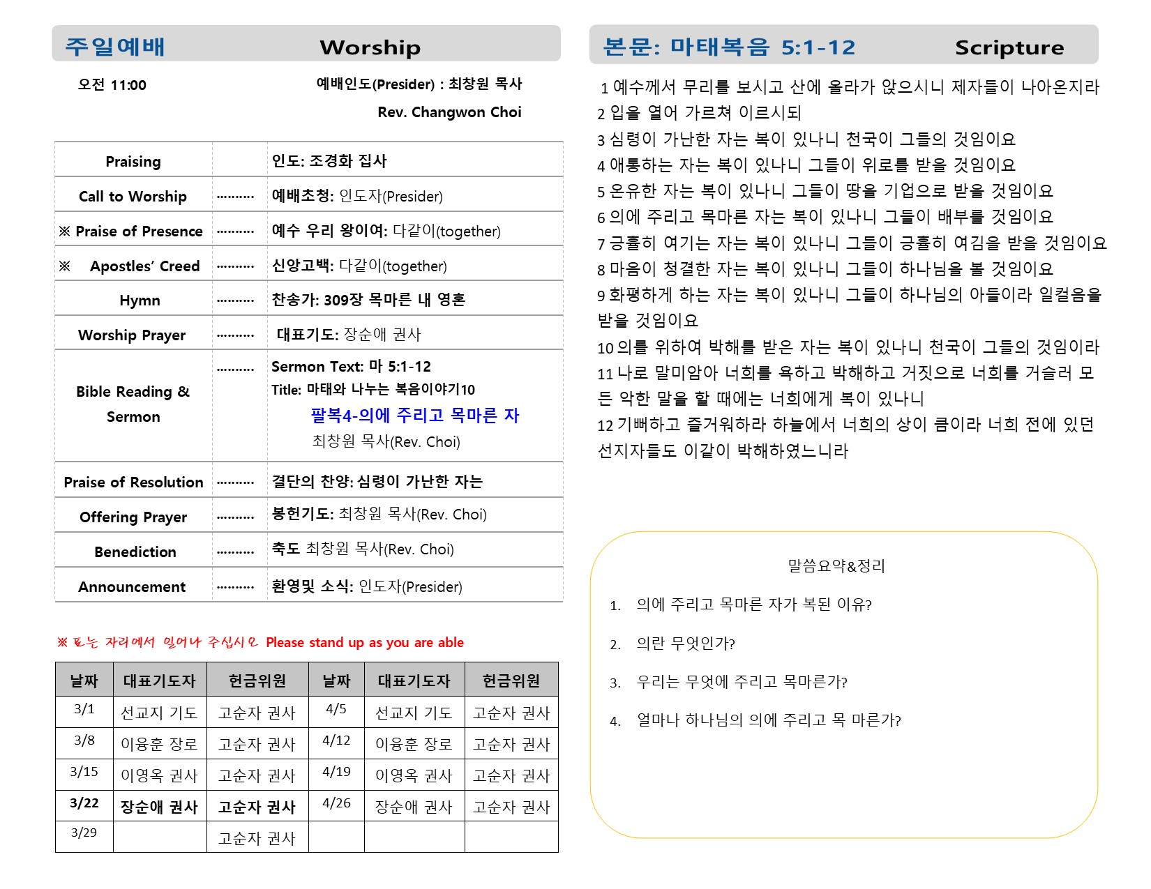 예배시간